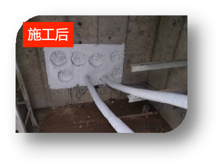 2、高分子电力孔洞防漏剂分为A组份、B组份,通过充分混合后,其中的活性组份可迅速反应,在可控时间内快速固化,从而用于电缆穿越管道情况下的封堵密封,起到立体密封作用。可有效防止水、水蒸汽、烟气透过。